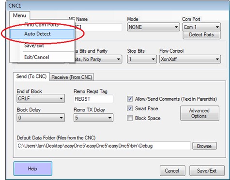 The procedure is similar for all versions - After placing a RemoDNC task into Auto-Detect mode you go to the CNC and send/punch a sizable program file which RemoDNC will analyse.