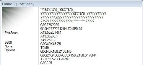 It's quite normal to see strange characters and symbols as RemoDNC scans the incoming data. After a few seconds clear CNC code should appear. When Analysis is complete RemoDNC will return to setup mode where you can review and save the detected settings.