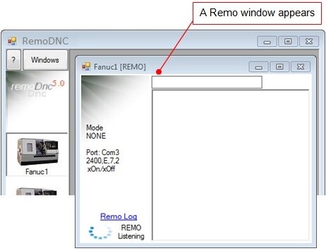 A Remo window appears and you see the status in the lower left corner of the Remo window. "Remo Listening". You can leave this window as it is if you want to observe it. Or you can size, position or even minimize it so you can do other things while Remo is running in the background. While Remo is listening you can do everything else at the CNC console.